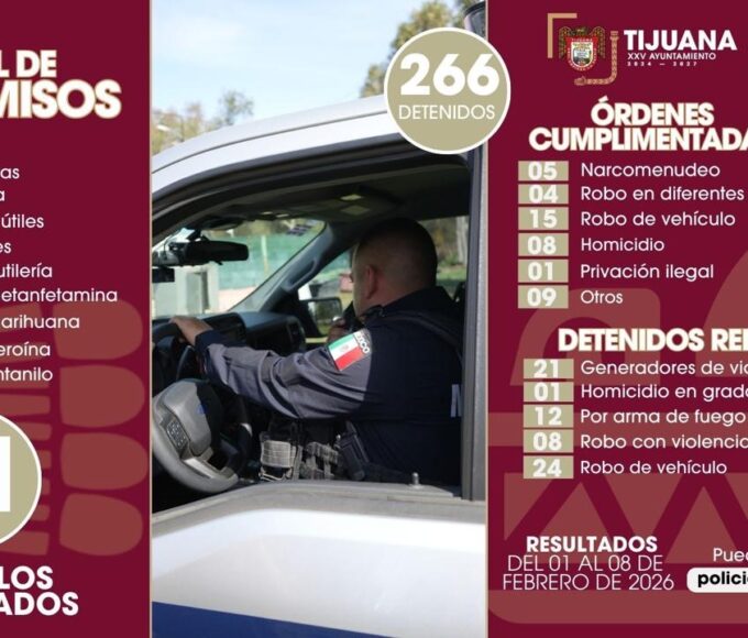 Byadmin3 febrero, 2026*Decomisa Policía Municipal de Tijuana más de 70 armas y detiene a más de mil presuntos delincuentes durante enero* *Tijuana, Baja California, a...