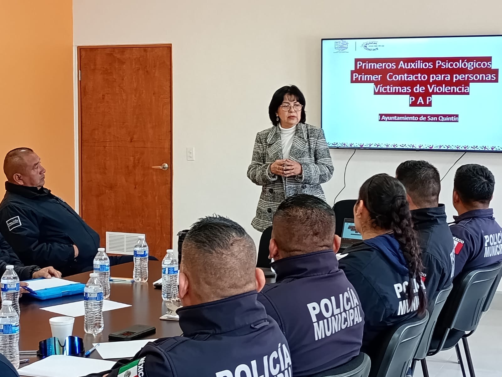 SAN QUINTIN.B.C., A 05 DE DICIEMBRE DEL 2024.- La Dirección Municipal de la Mujer, en el marco de los 16 días de activismo, impartió taller “Primeros Auxilios Psicológicos”, a personal de la Dirección de Seguridad Pública Municipal.