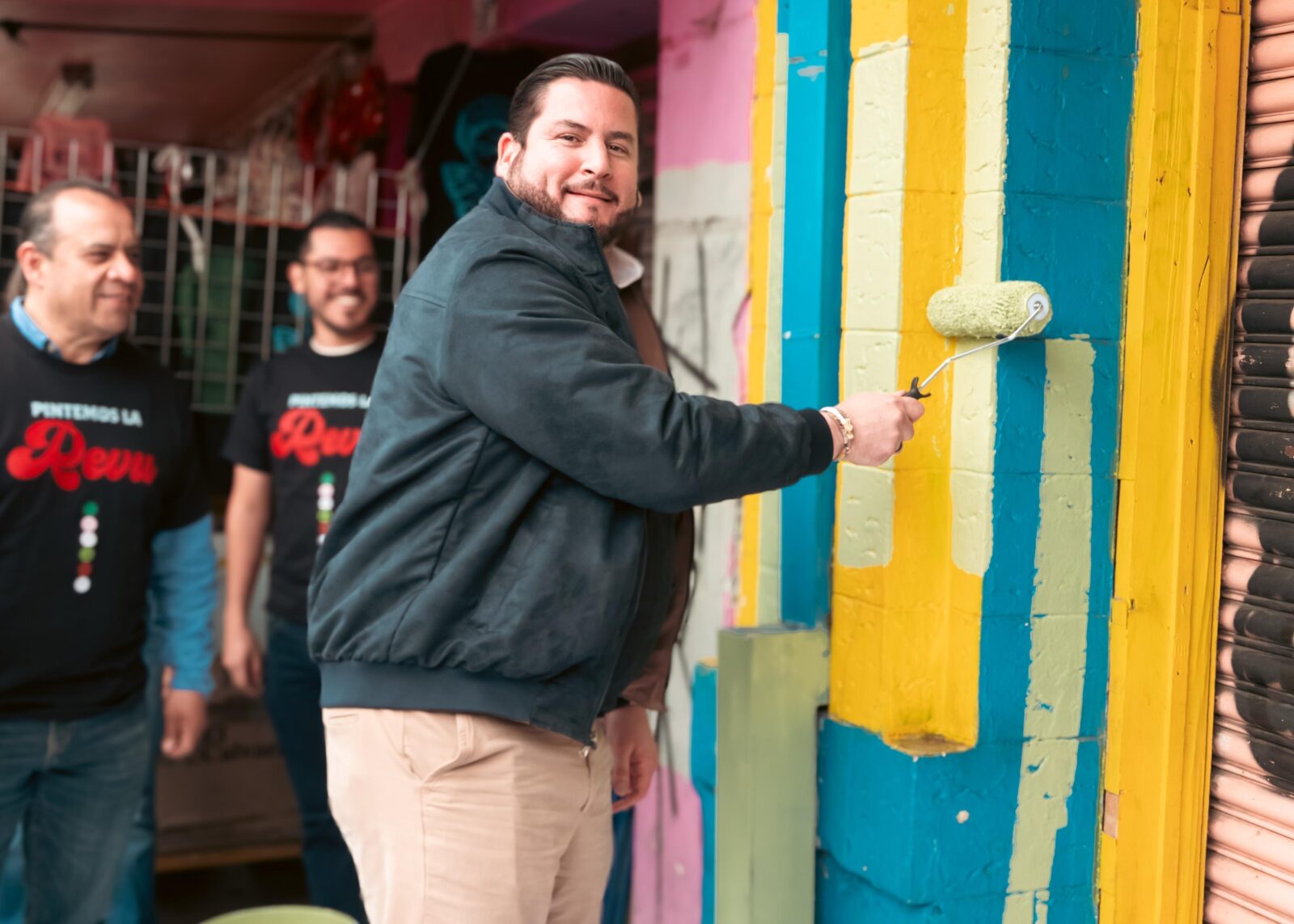 En el arranque del proyecto ‘Pintemos la Revu’ estuvieron presentes, José Luis Portillo Reyes, delegado del Centro; Héctor Bustamante, presidente del Fideicomiso del Centro Histórico de Tijuana; Claudia Martín Ortega, dueña del Pasaje Villa Colonial; así como demás comerciantes de la emblemática vialidad.