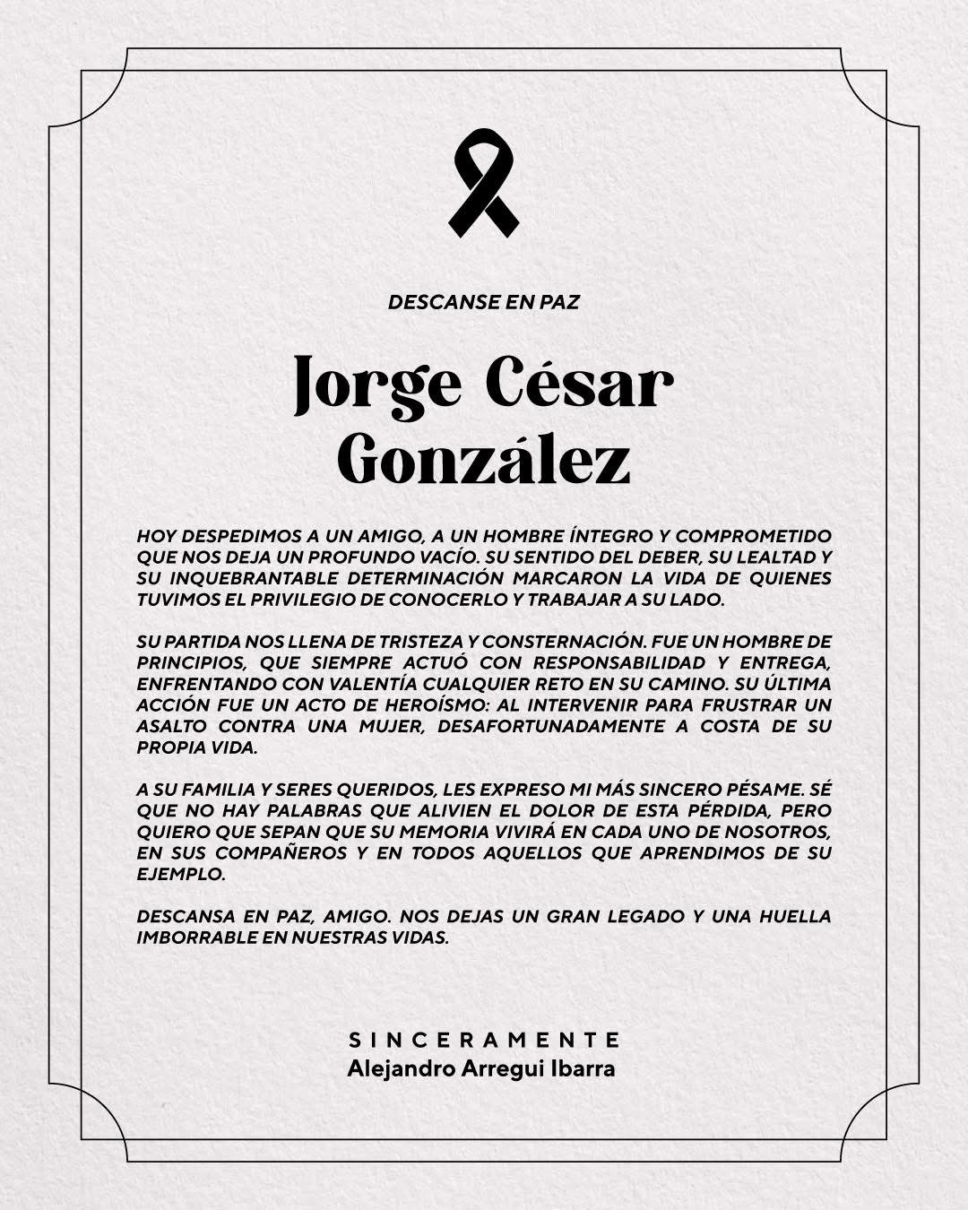 Se despide Arregui de colaborador; murió en el cumplimiento de su deber!
