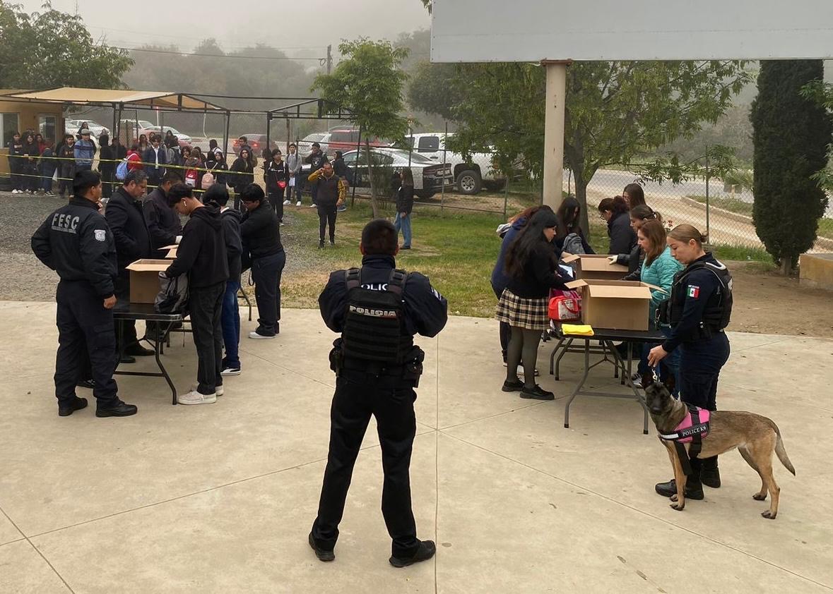 *Ensenada, Baja California, a viernes 11 de abril de 2025.-* La Dirección de Seguridad Pública Municipal (DSPM), a través de la subdirección de Prevención del Delito, en coordinación interinstitucional con la Secretaría de Seguridad Ciudadana del Estado —a través del área de Prevención a las Violencias— y la Fiscalía General del Estado —mediante la Agencia Estatal de Investigación y su área de Prevención del Delito— llevó a cabo filtros preventivos a las afueras de los planteles COBACH Encinos y CBTis 41.