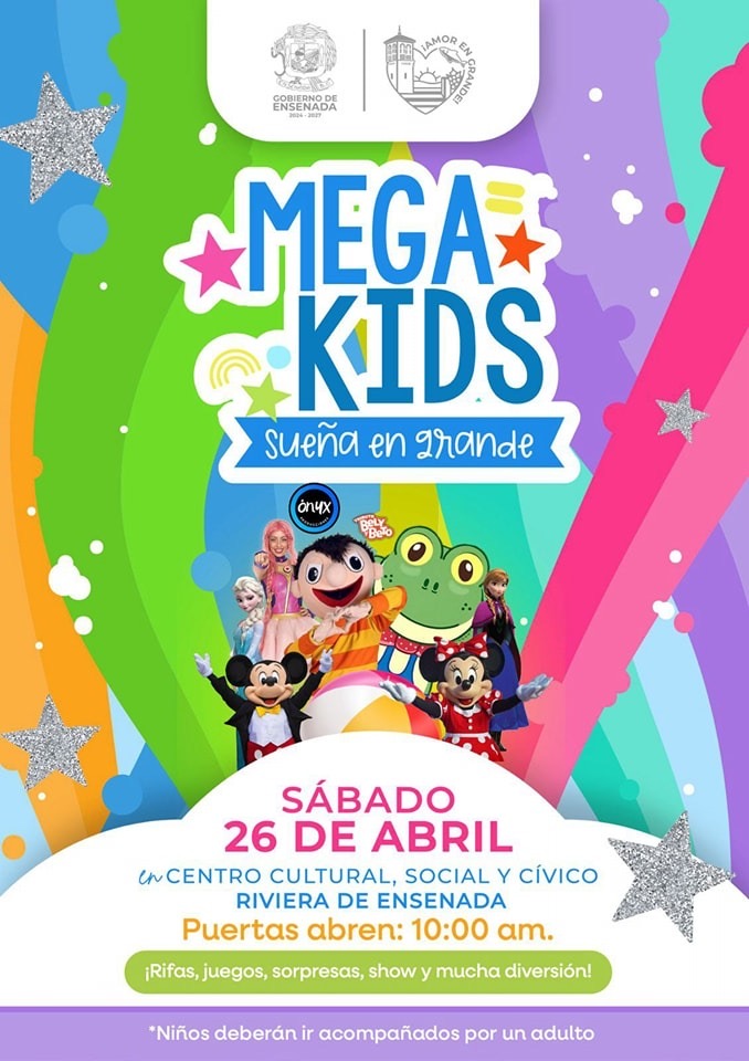 *Ensenada B. C.- Martes 22 de abril de 2025.-* Todo está listo para que este sábado 26 de abril, el Gobierno de Ensenada celebre el Día de la Niñez en el evento Mega Kids Sueña en Grande.