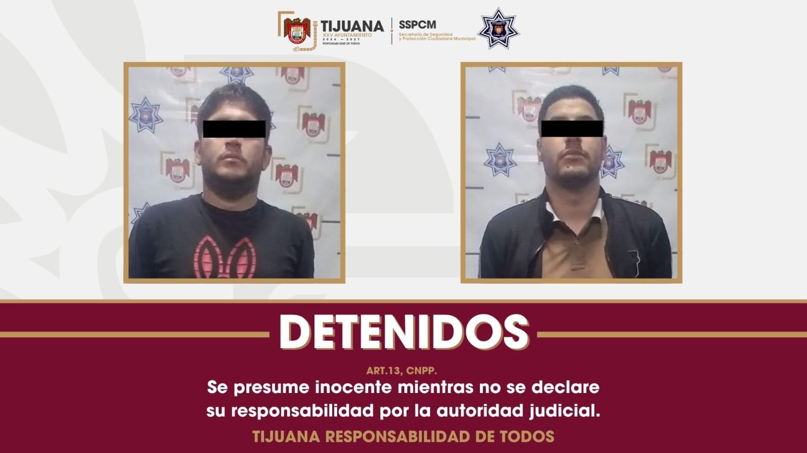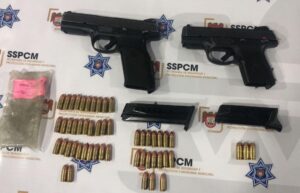 Tijuana, Baja California, a 25 de mayo de 2025.- Durante un recorrido de vigilancia en la colonia El Pípila, elementos de la Policía Municipal aseguraron a dos sujetos armados, mismos que al notar la presencia de la unidad policial, intentaron ocultarse generando una sospecha razonada de posible conducta delictiva.