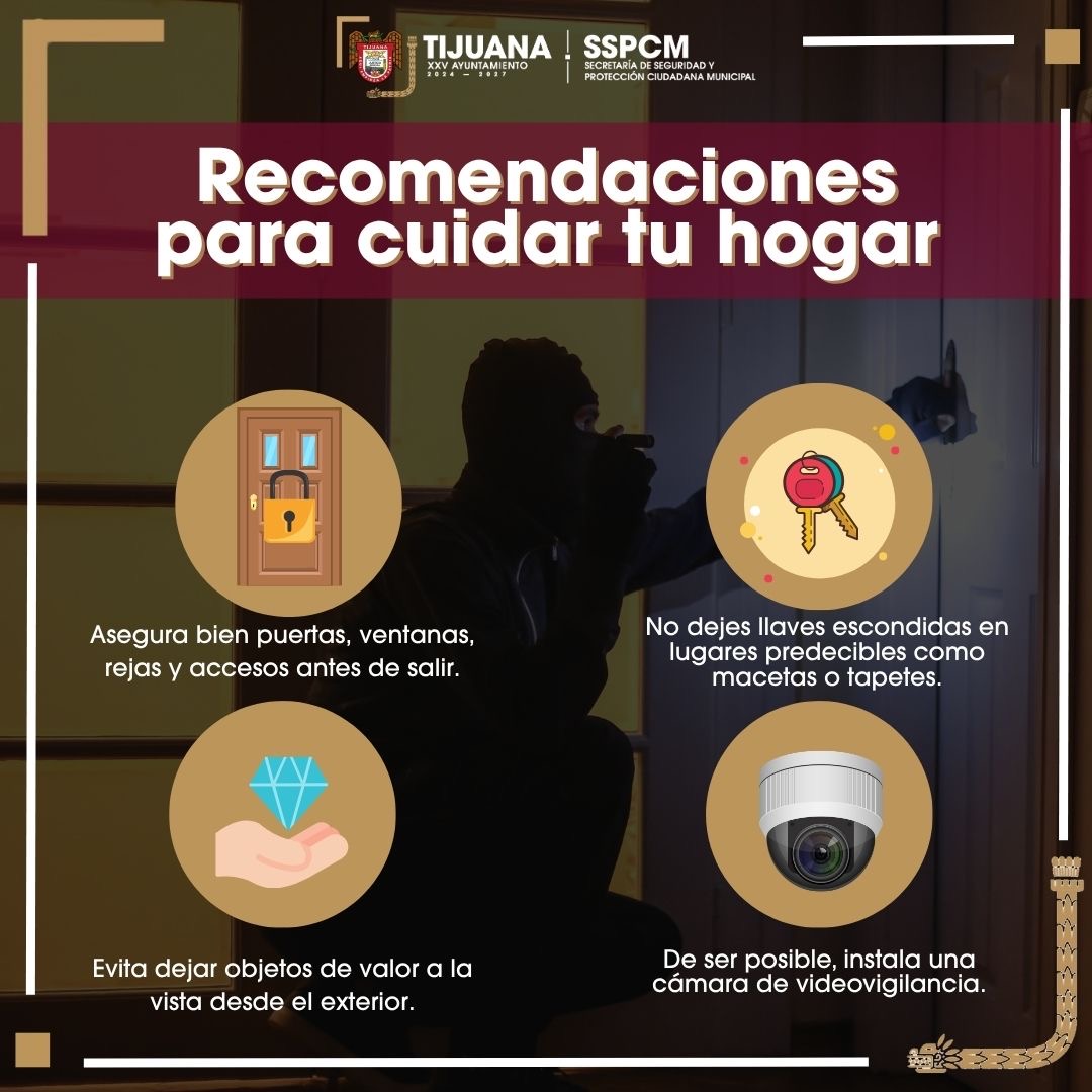 *Tijuana, Baja California, a 23 de julio de 2025.* La Secretaría de Seguridad y Protección Ciudadana Municipal (SSPCM) hace un llamado a la ciudadanía a reforzar las medidas de prevención para evitar robos a casa habitación, especialmente durante la temporada vacacional.