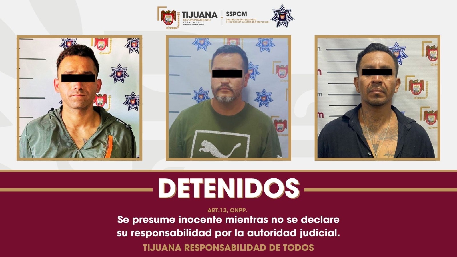 Tijuana, Baja California, a 25 de julio de 2025.- Derivado de los patrullajes preventivos y labores de vigilancia en distintos puntos de la ciudad, agentes de la Policía Municipal aseguraron a tres personas que fueron sorprendidas en posesión de vehículos con reporte de robo.