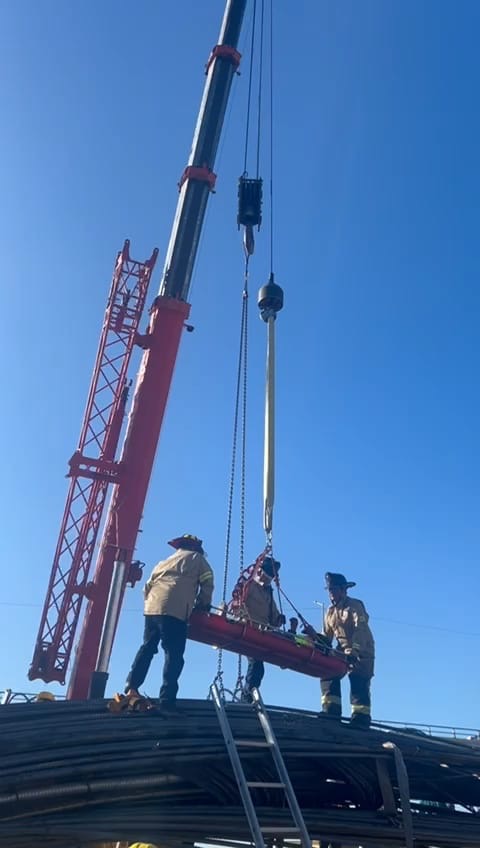 Tijuana, Baja California a 31 de julio de 2025.- La Secretaría de Seguridad y Protección Ciudadana Municipal (SSPCM), a través de la Dirección de Bomberos, llevó a cabo un exitoso rescate de dos trabajadores que quedaron atrapados tras un accidente en la construcción de una torre para el viaducto elevado, ubicado sobre la avenida Internacional, en la Zona Centro.