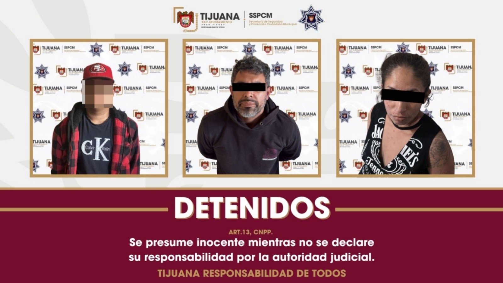 *Asegura Policía Municipal de Tijuana a tres personas con narcóticos; se presume su probable participación en intento de homicidio*