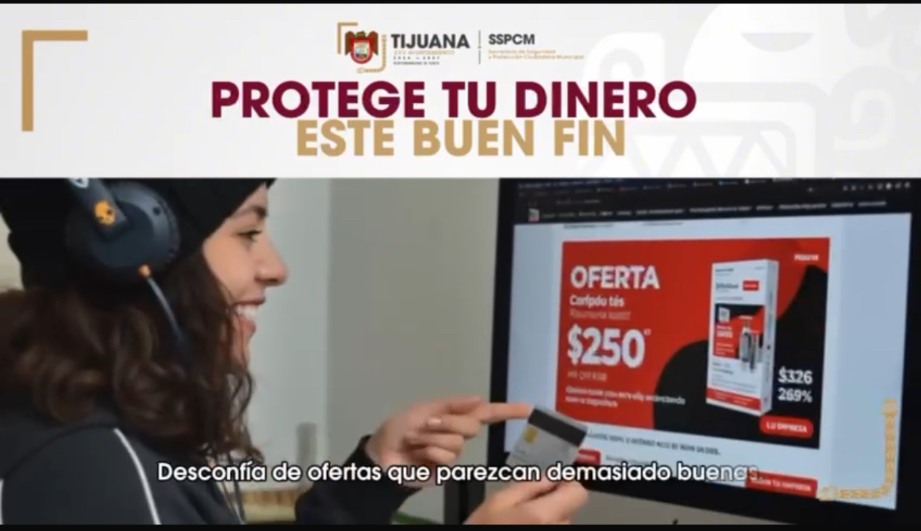 *Tijuana, Baja California, a 13 de noviembre de 2025.* Con el propósito de prevenir fraudes y proteger a la ciudadanía durante la temporada de descuentos del “Buen Fin”, la Secretaría de Seguridad y Protección Ciudadana Municipal (SSPCM), a través de la Policía Cibernética, emite una serie de recomendaciones para realizar compras en línea seguras y evitar ser víctima de delitos digitales.