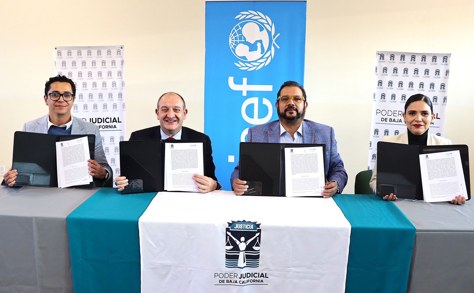La firma de este convenio se llevó a cabo entre ambas instituciones, con la participación, por parte de UNICEF, de Luis Fernando Carrera Castro, Representante en México, y Fernando Alonso Becerra, Jefe de la Oficina en Tijuana; y por parte del Poder Judicial de Baja California, del Magistrado Alejandro Isaac Fragozo López, Presidente del Tribunal Superior de Justicia y del Consejo de Administración, así como de la Directora de Derechos Humanos y Asuntos de Género, Rocío Karina Cano Albañez.