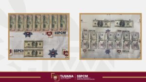 *Tijuana, Baja California a 10 de marzo de 2026.* La Secretaría de Seguridad y Protección Ciudadana Municipal (SSPCM) aseguró a una mujer identificada como presunta responsable de llevar a cabo transacciones con dinero falso y de intentar sobornar a oficiales de la Policía Municipal con supuestos billetes en dólares, con el objetivo de evadir su detención.