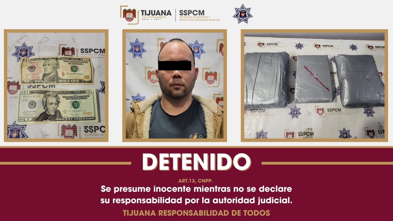 *Tijuana, Baja California, a 8 de abril de 2026.* La Secretaría de Seguridad y Protección Ciudadana Municipal (SSPCM), informa que agentes de la Policía Municipal de Tijuana detuvieron a un hombre por su presunta responsabilidad en los delitos de cohecho y delitos contra la salud, durante un operativo de vigilancia en la colonia Zona Centro.