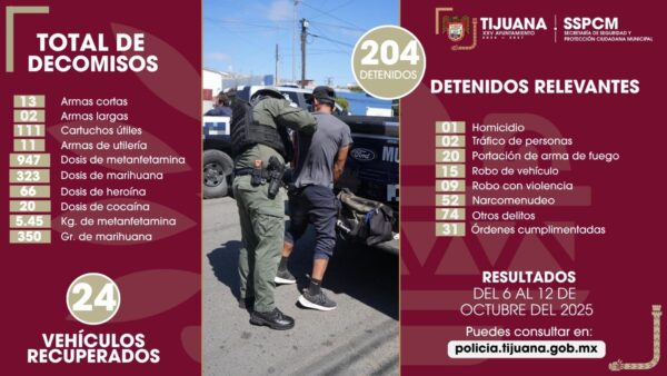 *Detiene Policía Municipal de Tijuana a objetivo prioritario con orden de aprehensión activa por homicidio* *Tijuana, Baja California, a 10 de octubre de...