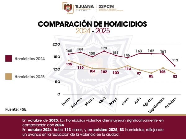 *Registra SSPCM disminución de homicidios durante octubre: 30 defunciones menos que en el mismo mes del 2024* *Tijuana, Baja California a 3 de...