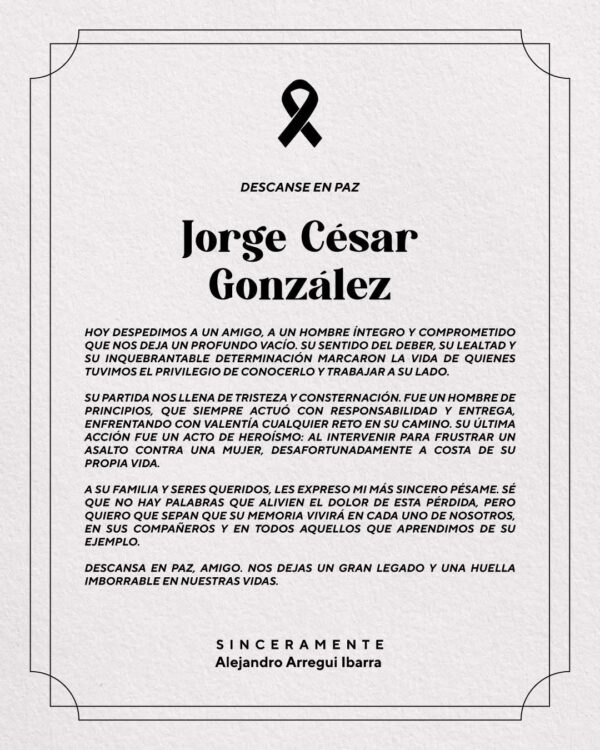 Ensenada.- El secretario del Trabajo en Baja California, Alejandro Arregui Ibarra, emitió emotivo mensaje de despedida para Jorge César González, quien perdió la...